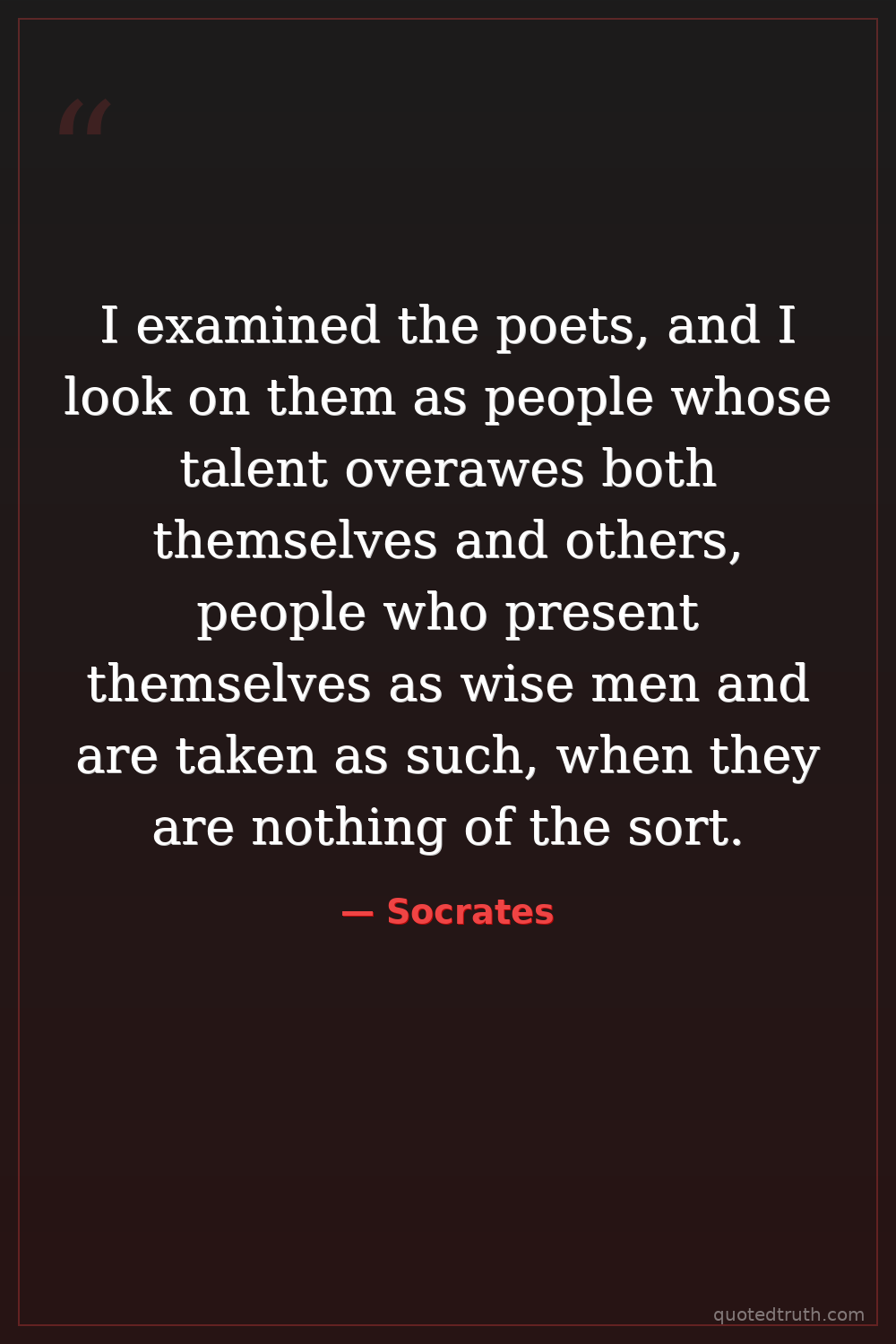 I examined the poets, and I look on them as people whose talent overawes both themselves and others, people who present themselves as wise men and are taken as such, when they are nothing of the sort.