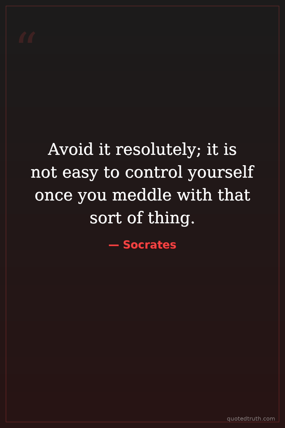 Avoid it resolutely; it is not easy to control yourself once you meddle with that sort of thing.