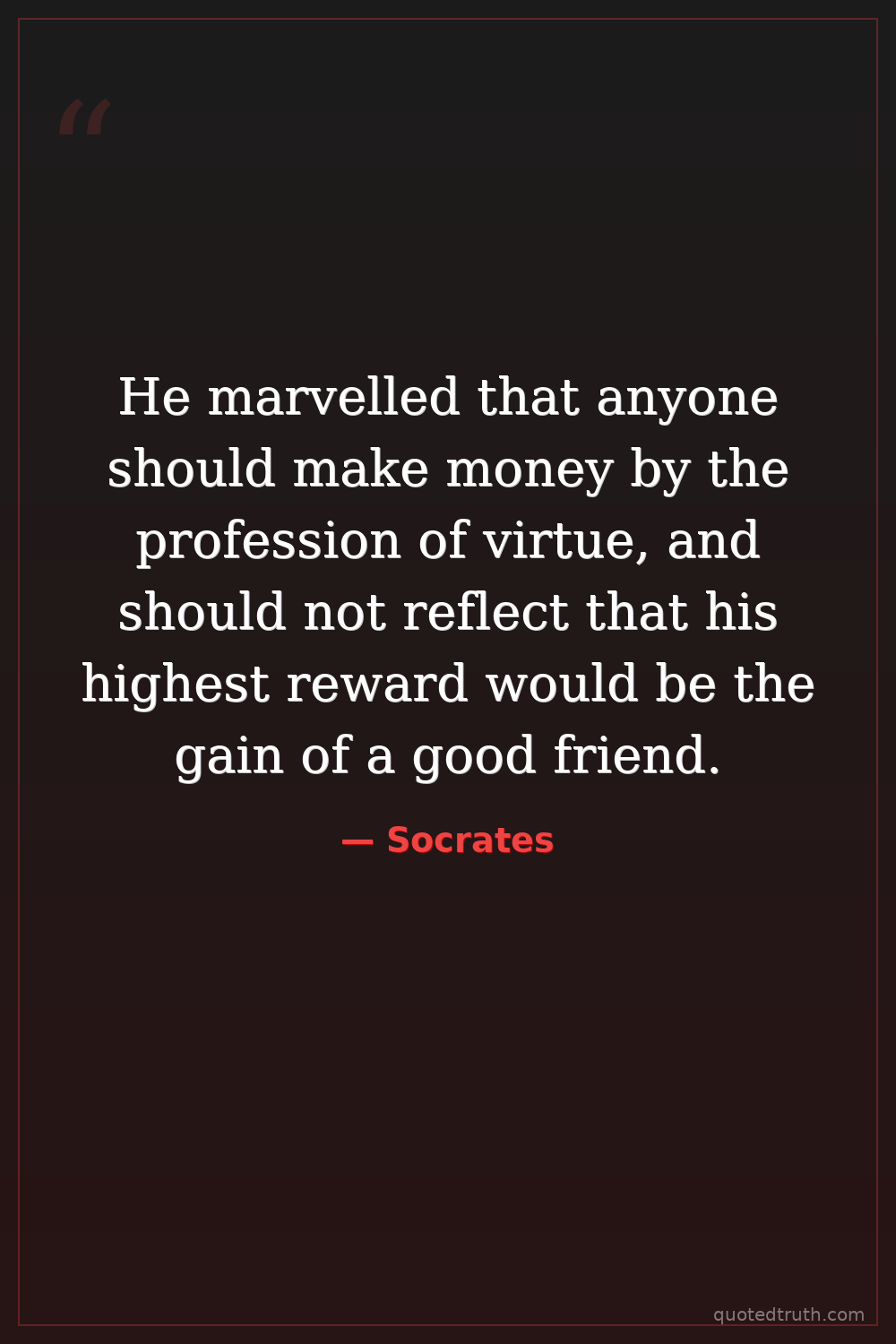 He marvelled that anyone should make money by the profession of virtue, and should not reflect that his highest reward would be the gain of a good friend.