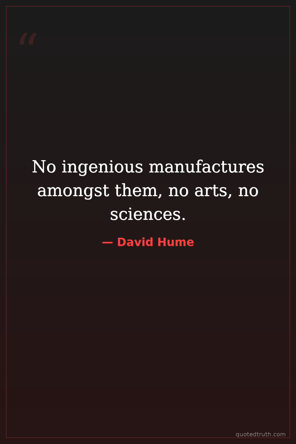 No ingenious manufactures amongst them, no arts, no sciences.