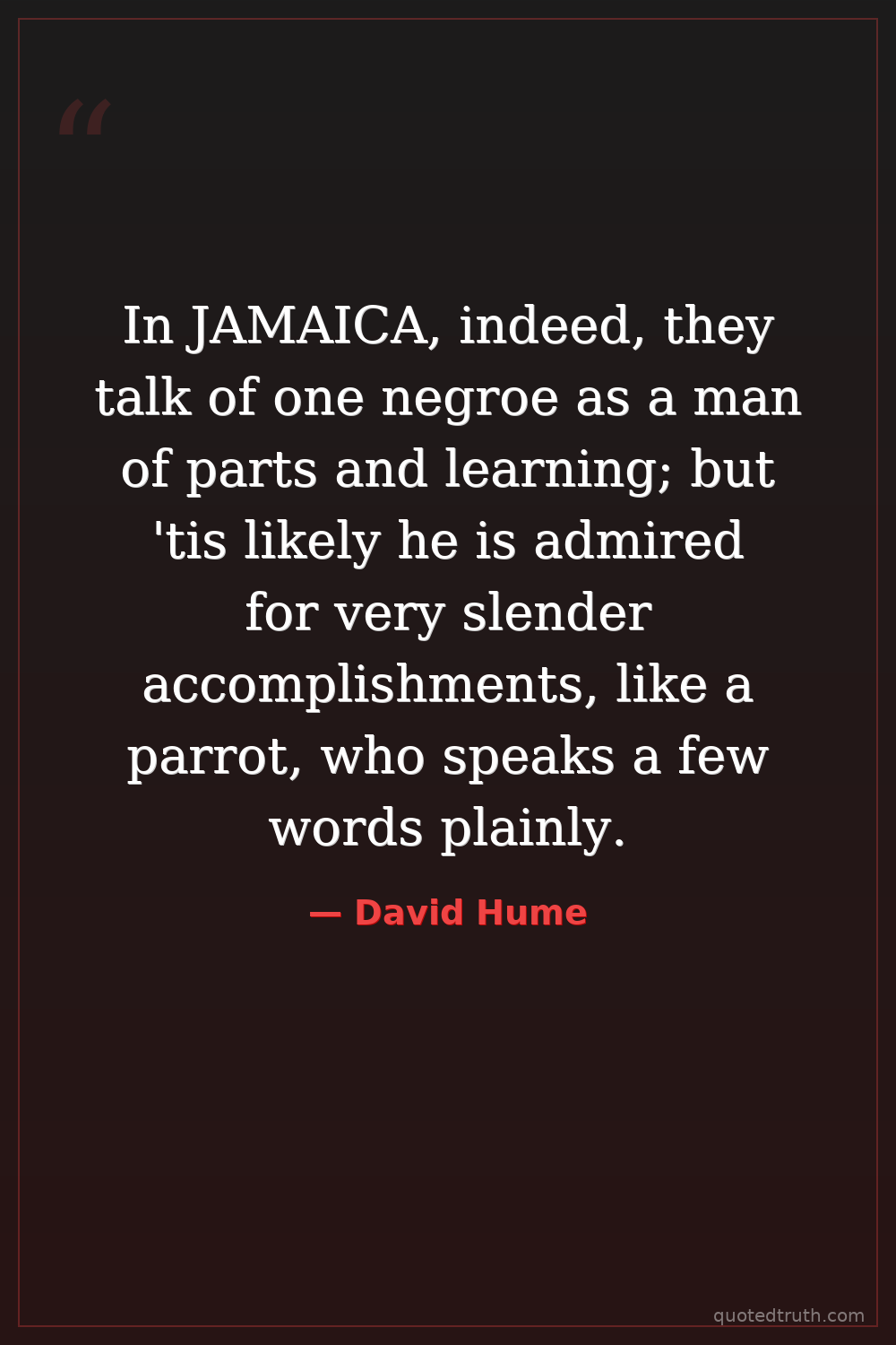 In JAMAICA, indeed, they talk of one negroe as a man of parts and learning; but 'tis likely he is admired for very slender accomplishments, like a parrot, who speaks a few words plainly.