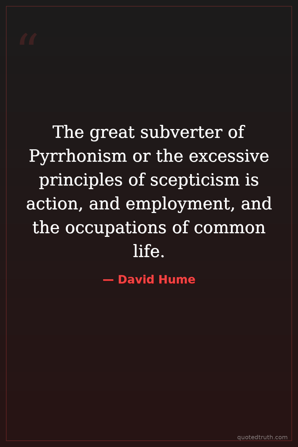 The great subverter of Pyrrhonism or the excessive principles of scepticism is action, and employment, and the occupations of common life.