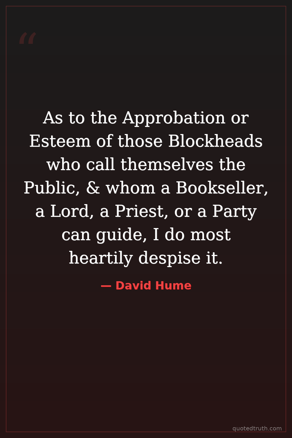 As to the Approbation or Esteem of those Blockheads who call themselves the Public, & whom a Bookseller, a Lord, a Priest, or a Party can guide, I do most heartily despise it.