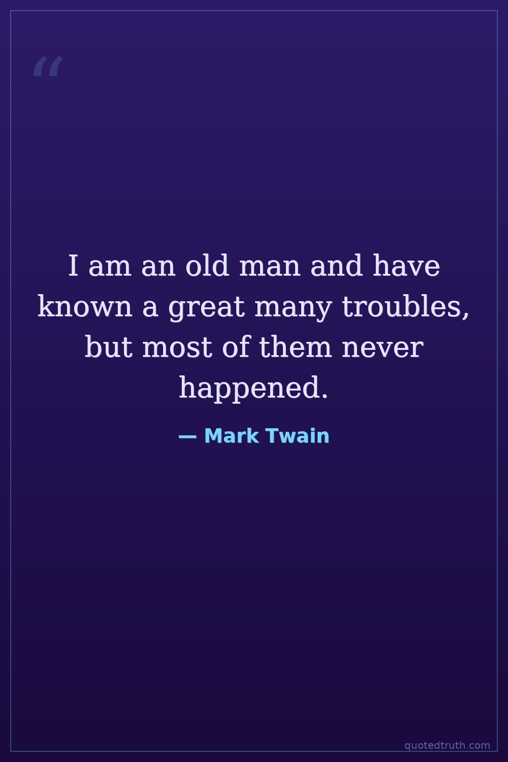 I am an old man and have known a great many troubles, but most of them never happened.