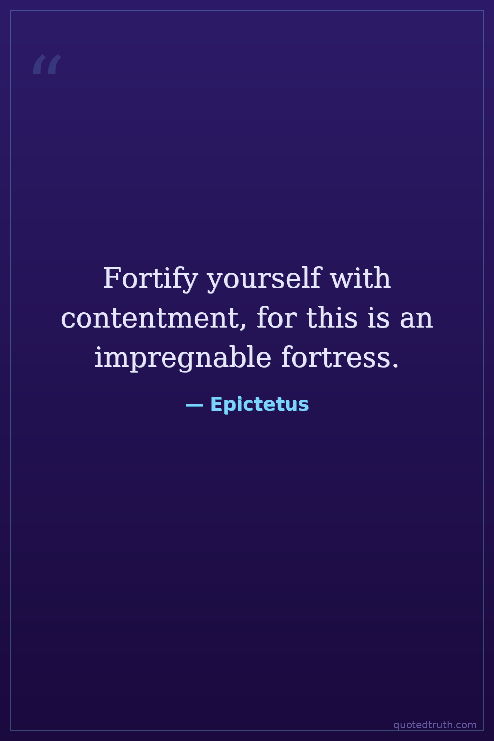 Fortify yourself with contentment, for this is an impregnable fortress.