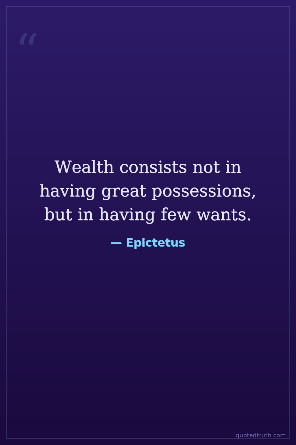 Wealth consists not in having great possessions, but in having few wants.