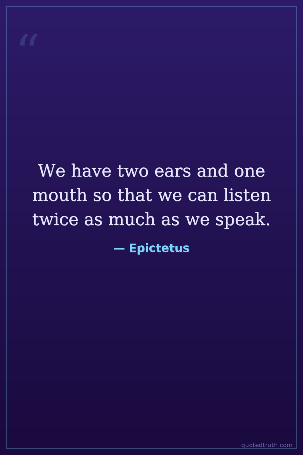 We have two ears and one mouth so that we can listen twice as much as we speak.