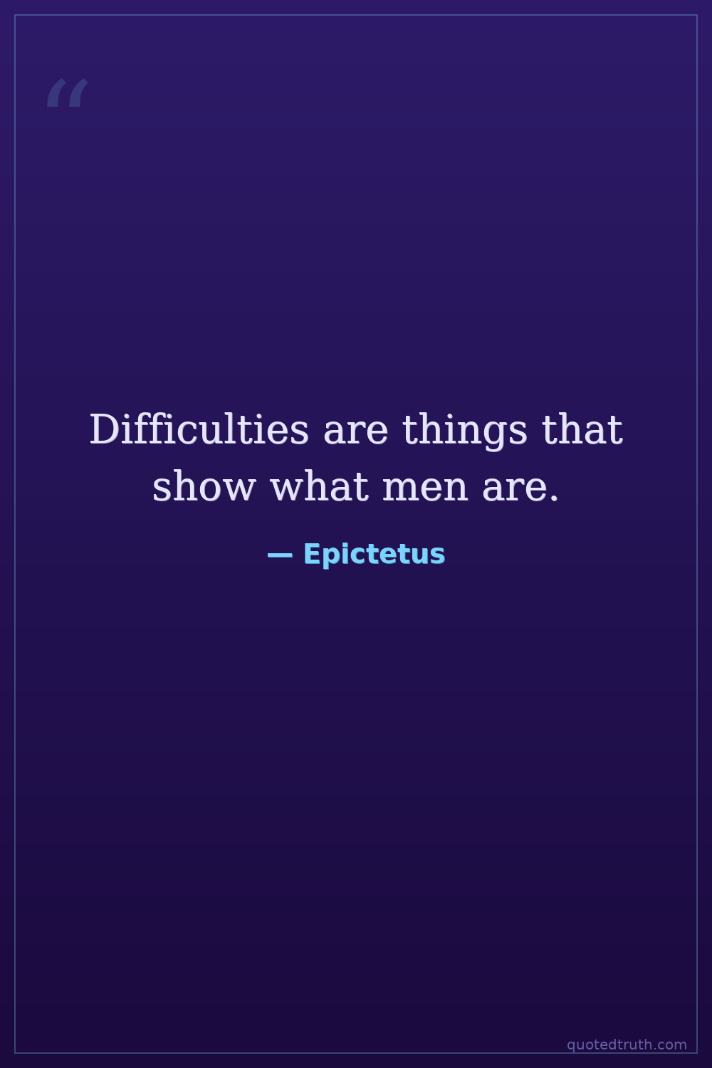 Difficulties are things that show what men are.