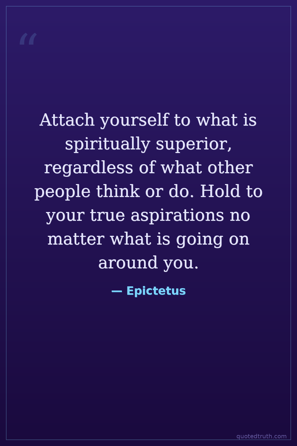 Attach yourself to what is spiritually superior, regardless of what other people think or do. Hold to your true aspirations no matter what is going on around you.