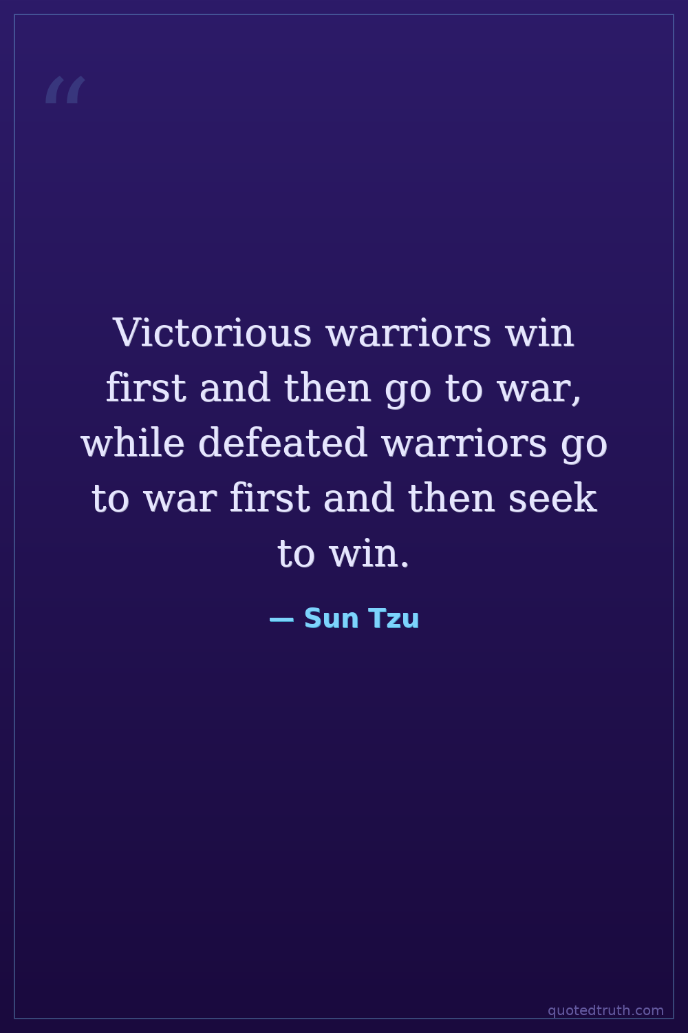 Victorious warriors win first and then go to war, while defeated warriors go to war first and then seek to win.