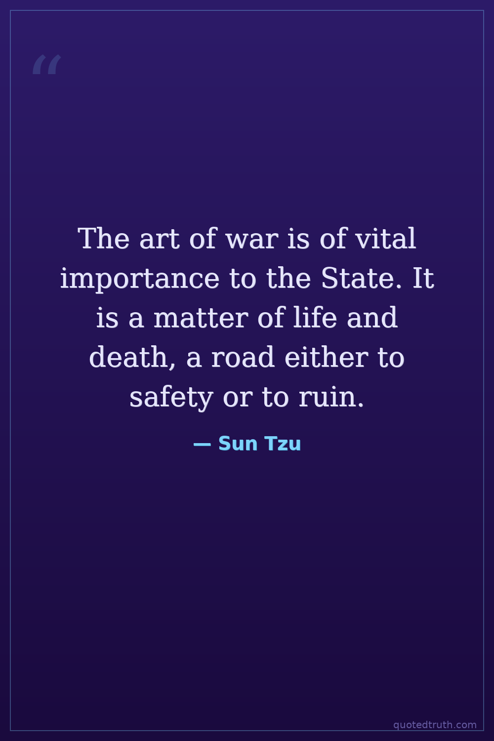 The art of war is of vital importance to the State. It is a matter of life and death, a road either to safety or to ruin.
