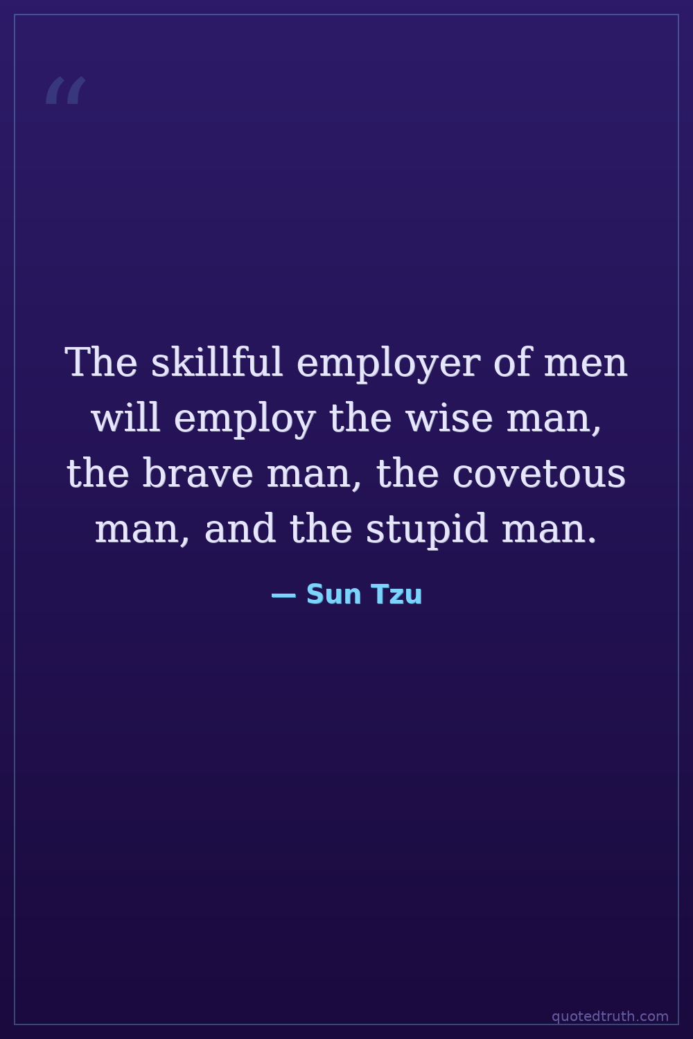 The skillful employer of men will employ the wise man, the brave man, the covetous man, and the stupid man.