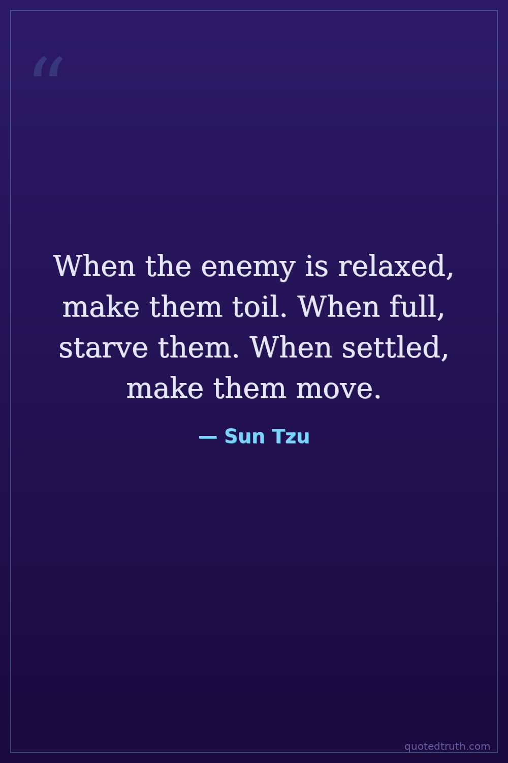 When the enemy is relaxed, make them toil. When full, starve them. When settled, make them move.