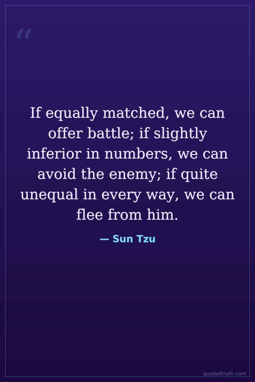 If equally matched, we can offer battle; if slightly inferior in numbers, we can avoid the enemy; if quite unequal in every way, we can flee from him.