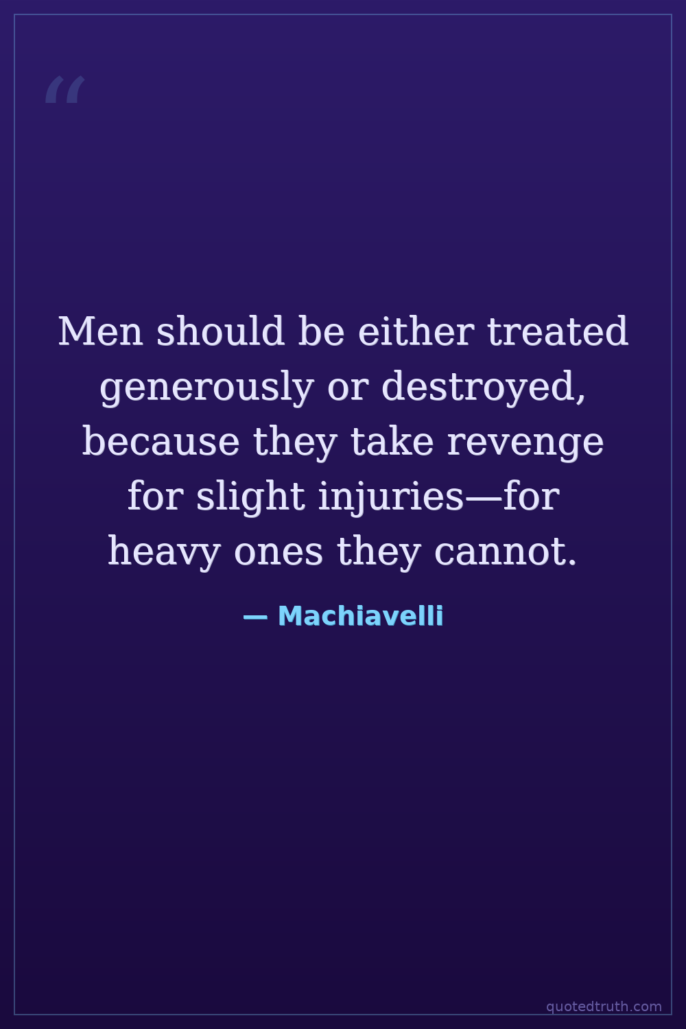 Men should be either treated generously or destroyed, because they take revenge for slight injuries—for heavy ones they cannot.