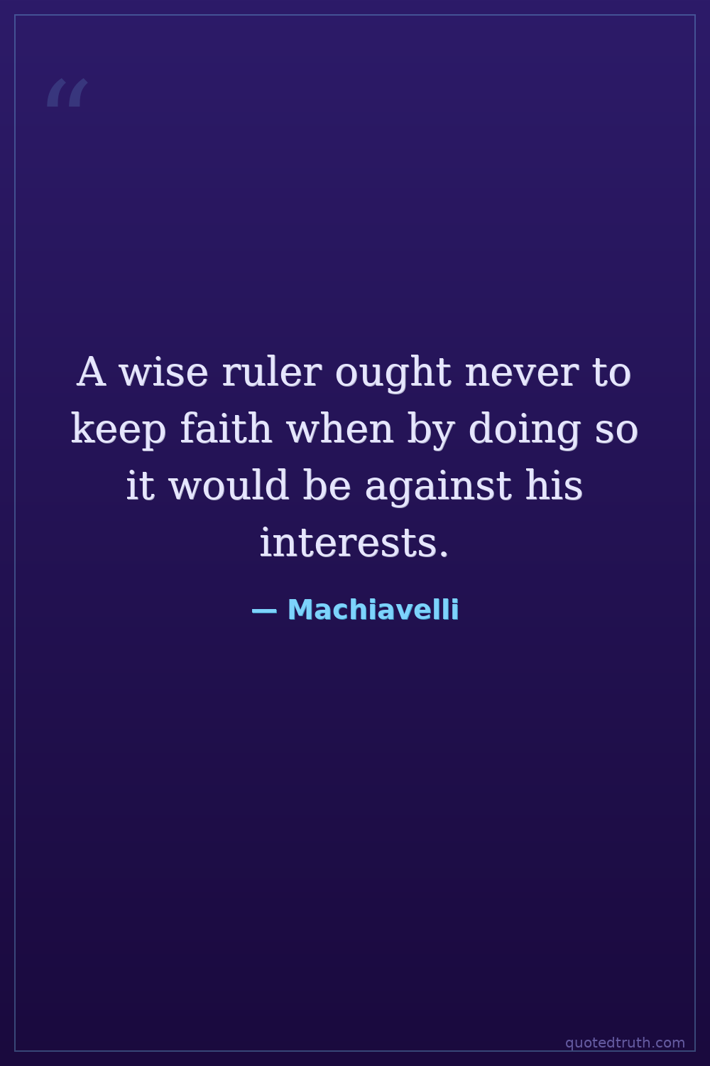 A wise ruler ought never to keep faith when by doing so it would be against his interests.