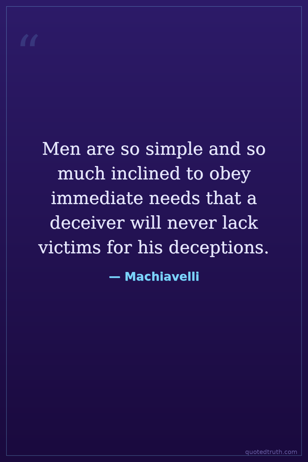 Men are so simple and so much inclined to obey immediate needs that a deceiver will never lack victims for his deceptions.