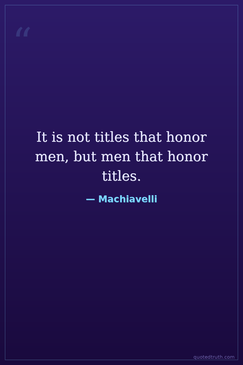 It is not titles that honor men, but men that honor titles.