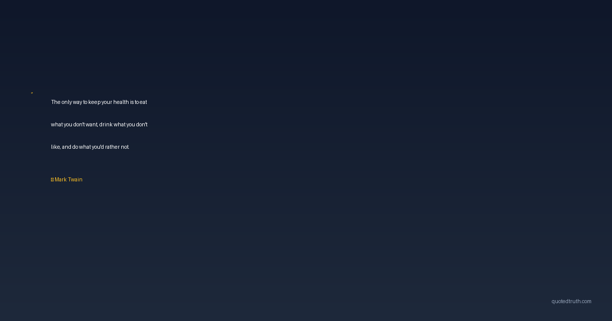 The only way to keep your health is to eat what you don't want, drink what you don't like, and do what you'd rather not.