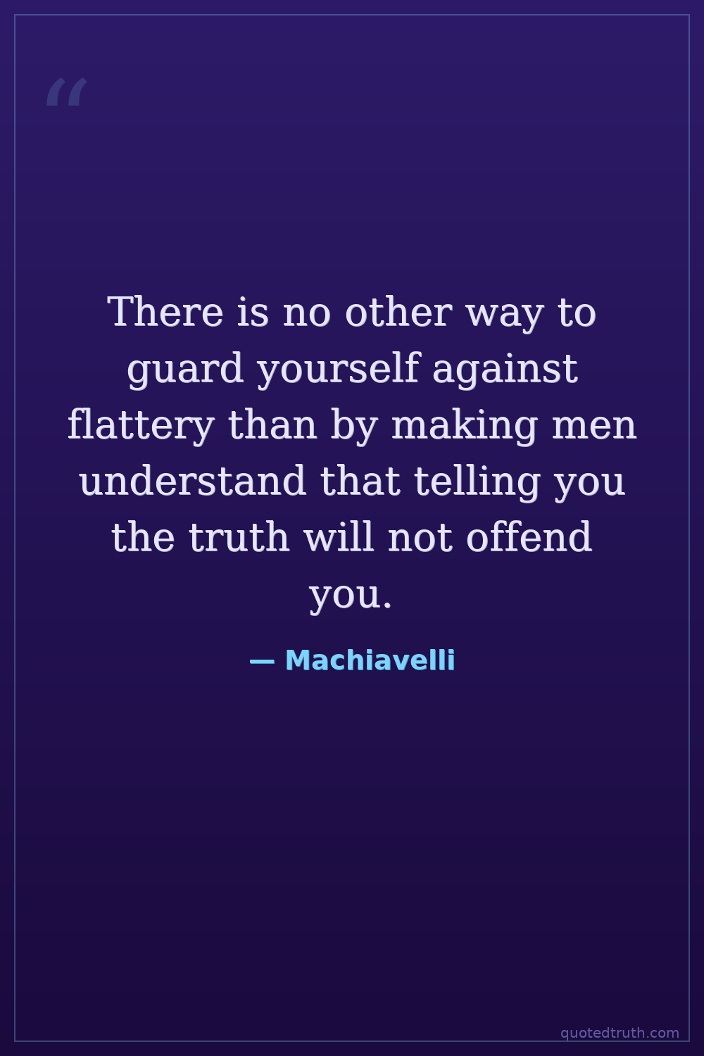 There is no other way to guard yourself against flattery than by making men understand that telling you the truth will not offend you.
