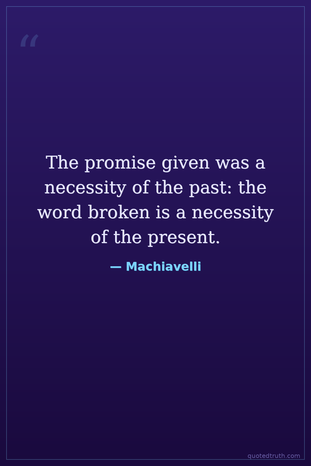 Controversial"It is necessary for a prince wishing to hold his own to know how to do wrong, and to make use of it or not according to necessity."