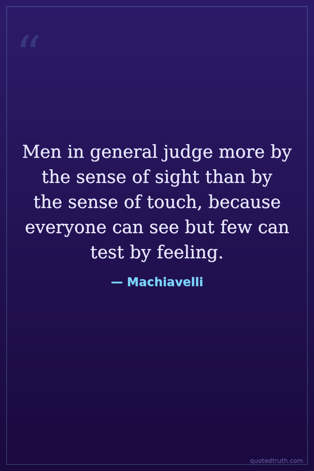 Men in general judge more by the sense of sight than by the sense of touch, because everyone can see but few can test by feeling.