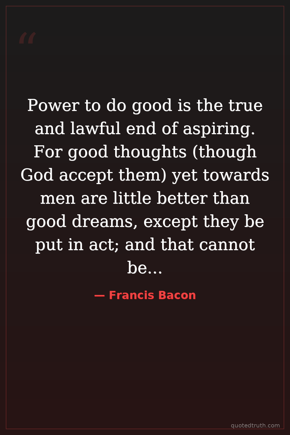 Power to do good is the true and lawful end of aspiring. For good thoughts (though God accept them) yet towards men are little better than good dreams, except they be put in act; and that cannot be without power and place, as the vantage and commanding ground.