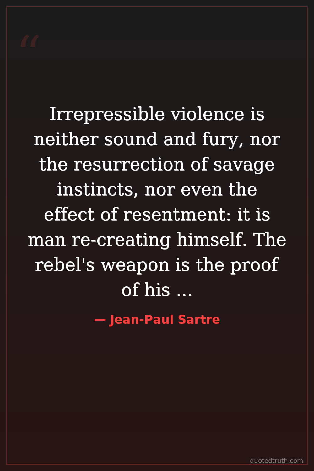 Irrepressible violence is neither sound and fury, nor the resurrection of savage instincts, nor even the effect of resentment: it is man re-creating himself. The rebel's weapon is the proof of his humanity.