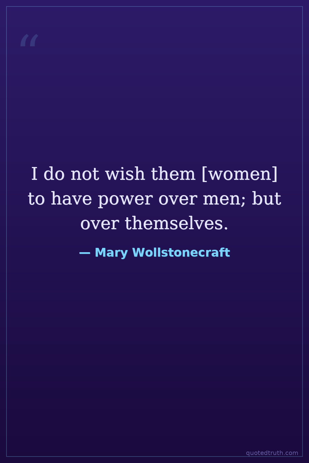 I do not wish them [women] to have power over men; but over themselves.