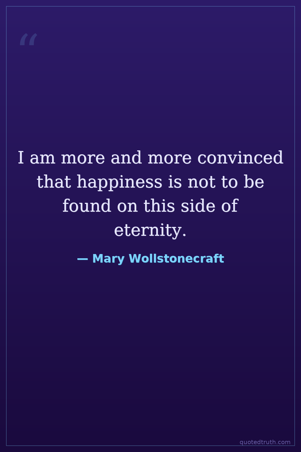 I am more and more convinced that happiness is not to be found on this side of eternity.