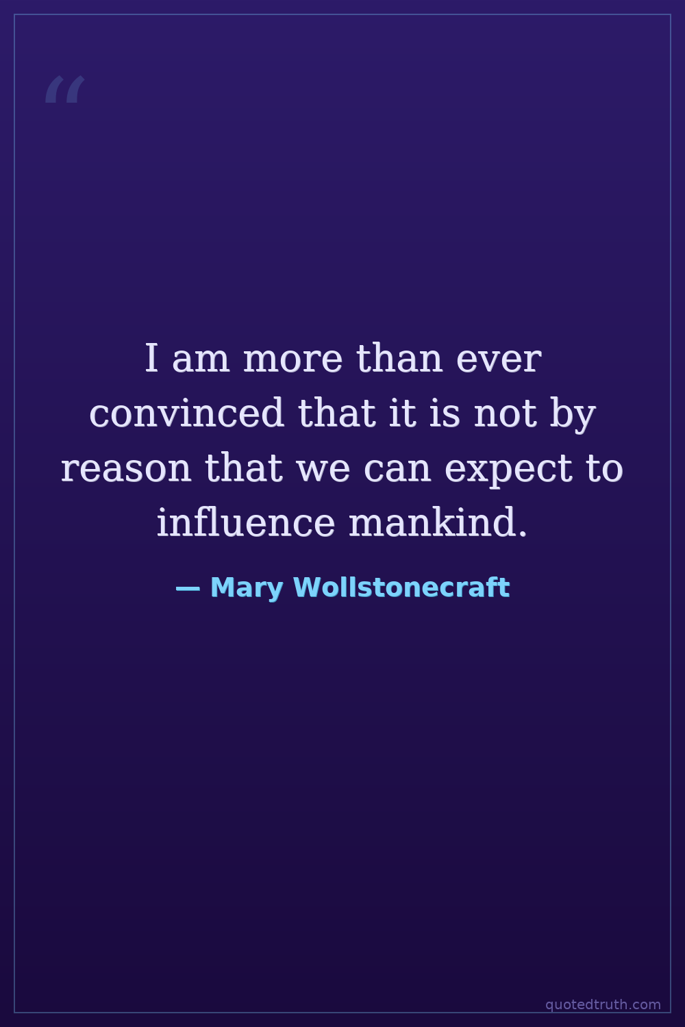 I am more than ever convinced that it is not by reason that we can expect to influence mankind.