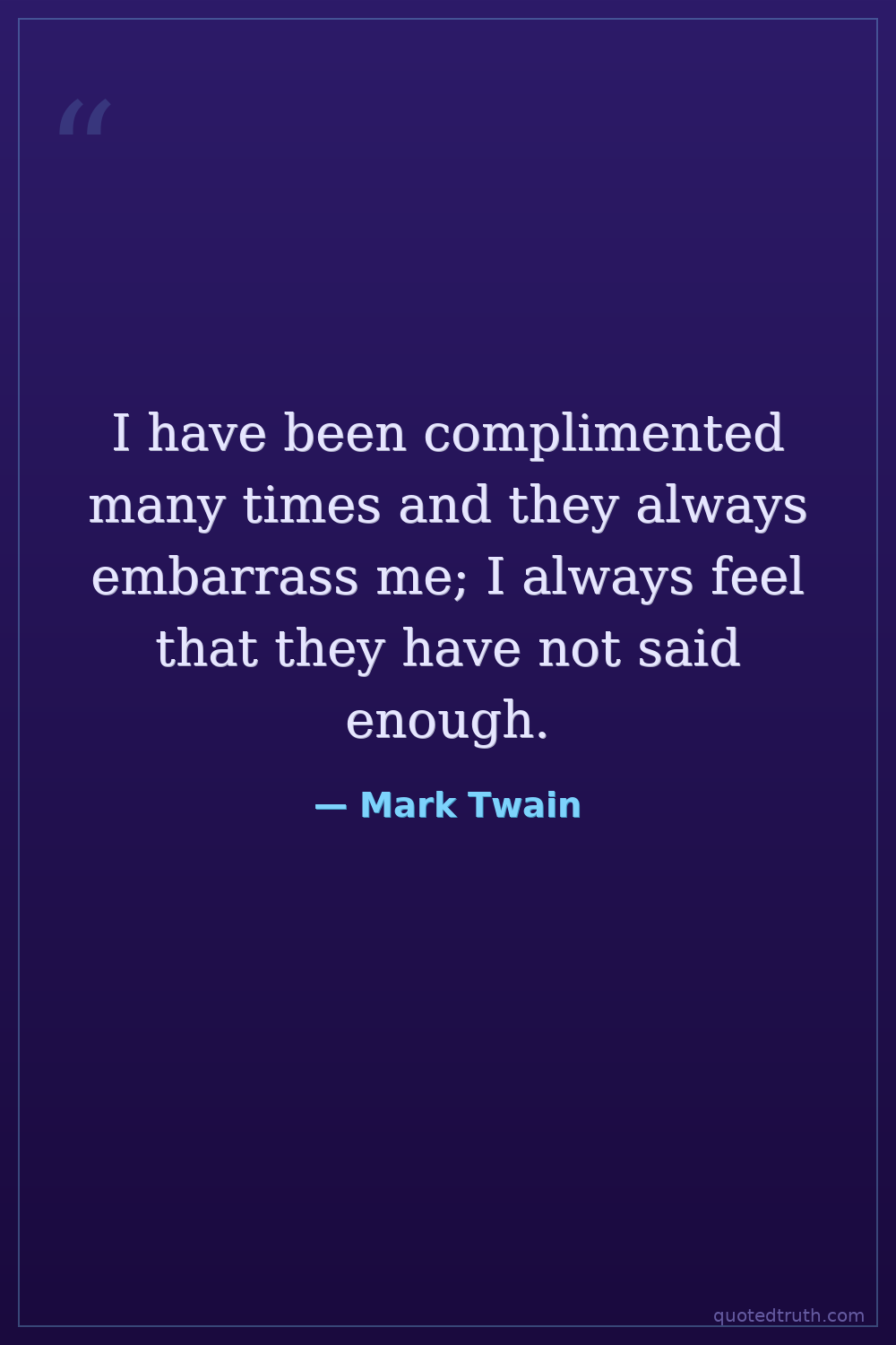 I have been complimented many times and they always embarrass me; I always feel that they have not said enough.