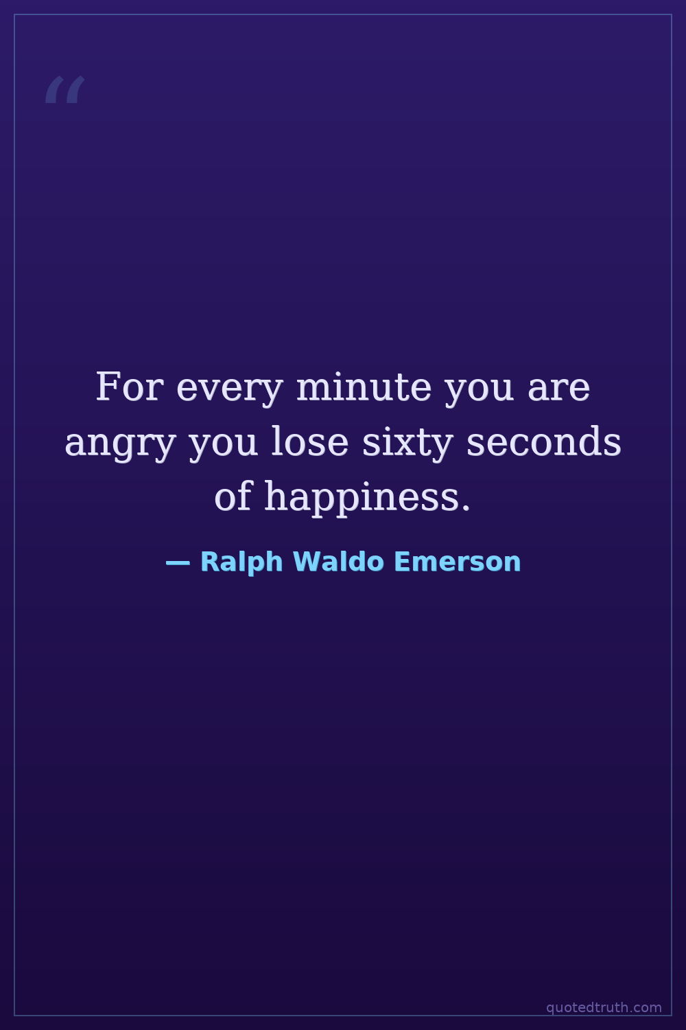 For every minute you are angry you lose sixty seconds of happiness.