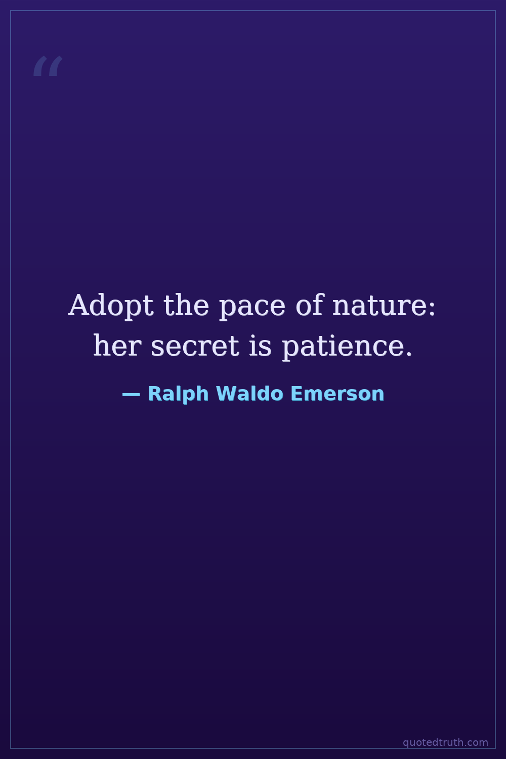 Adopt the pace of nature: her secret is patience.