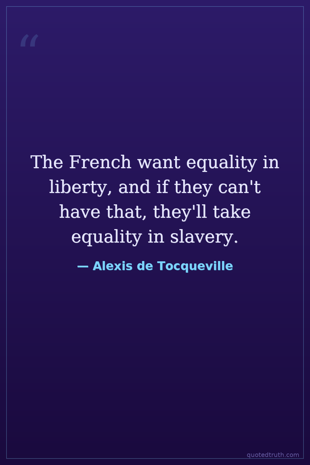 The French want equality in liberty, and if they can't have that, they'll take equality in slavery.