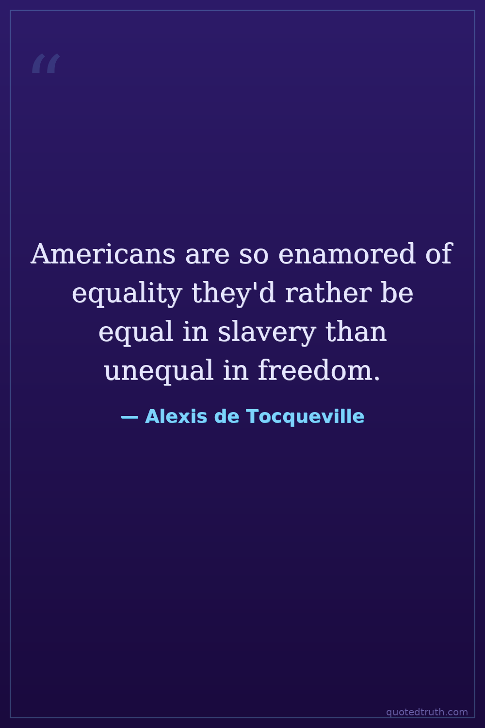 Americans are so enamored of equality they'd rather be equal in slavery than unequal in freedom.