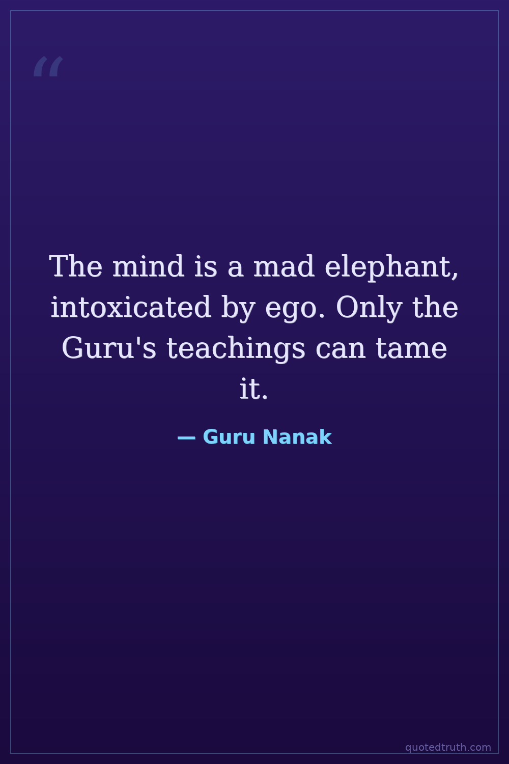 The mind is a mad elephant, intoxicated by ego. Only the Guru's teachings can tame it.