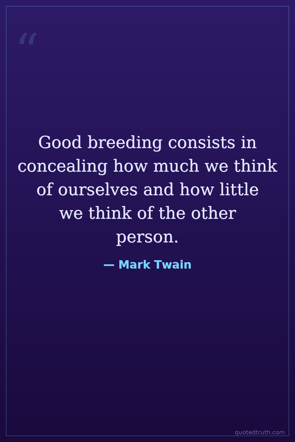 Good breeding consists in concealing how much we think of ourselves and how little we think of the other person.