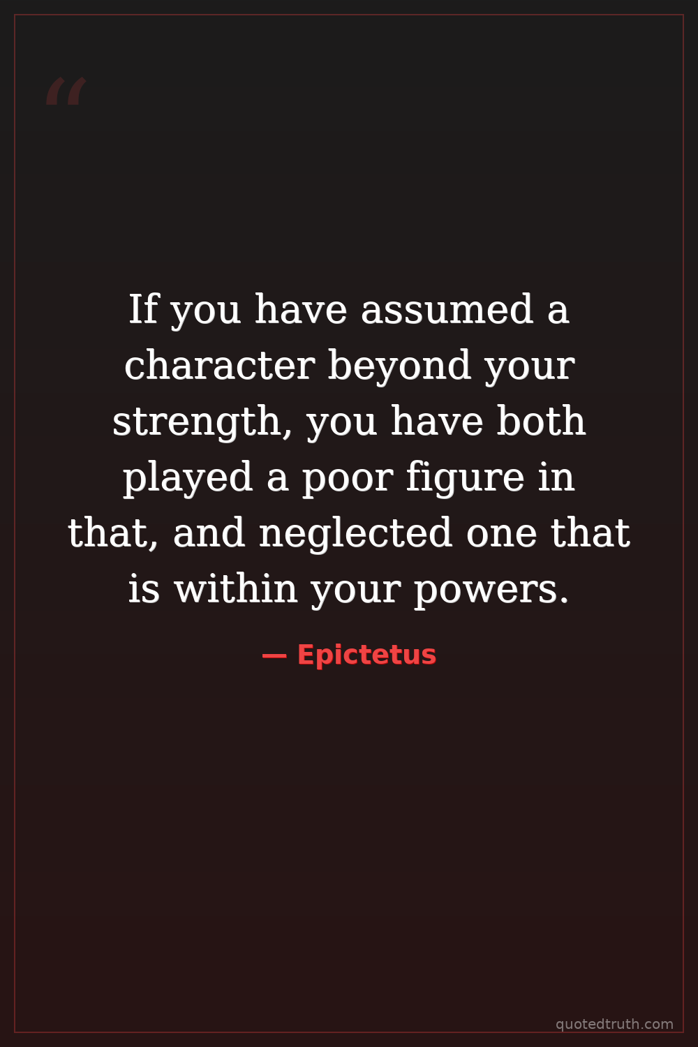 If you have assumed a character beyond your strength, you have both played a poor figure in that, and neglected one that is within your powers.
