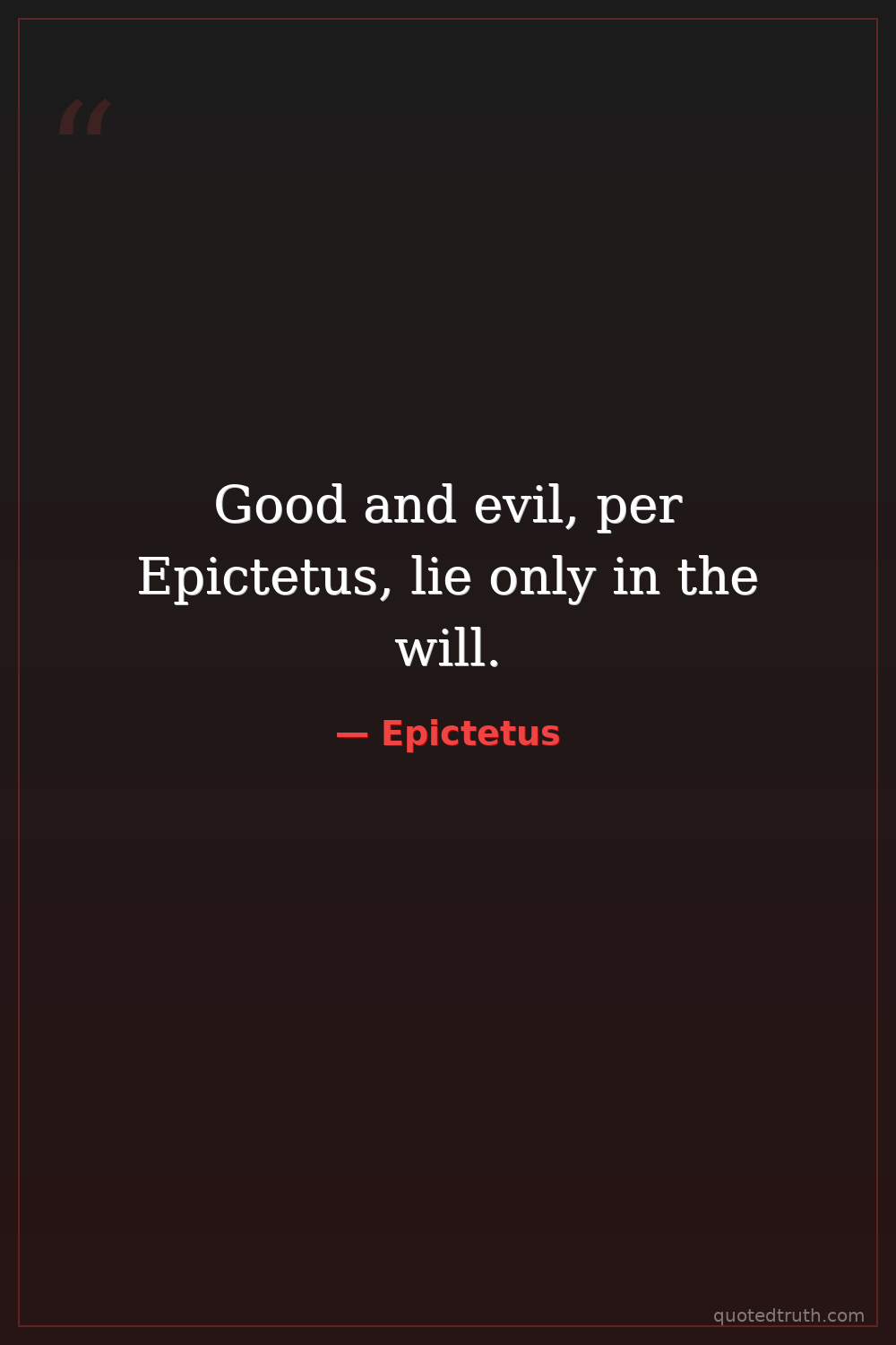 Good and evil, per Epictetus, lie only in the will.