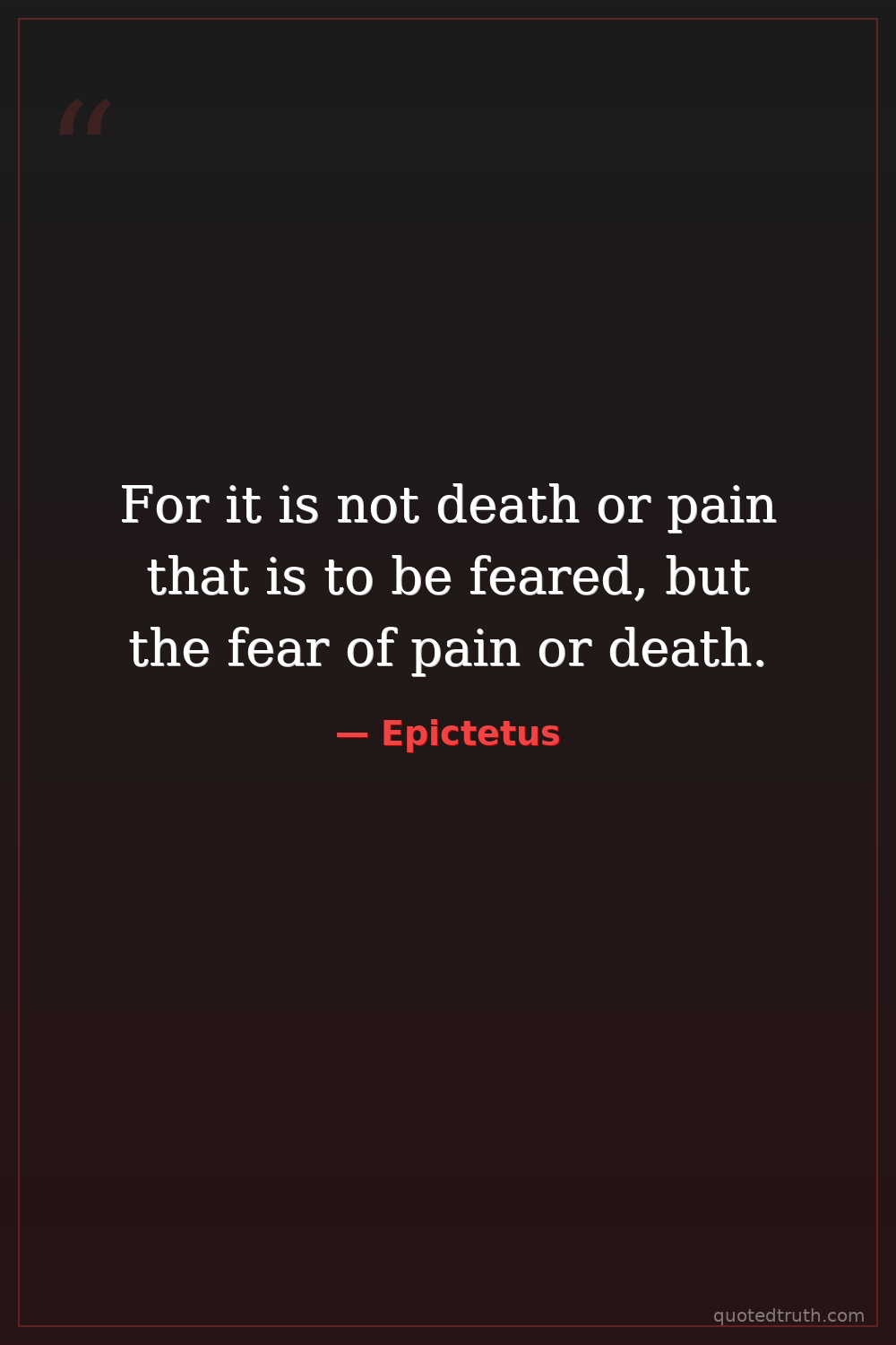 For it is not death or pain that is to be feared, but the fear of pain or death.