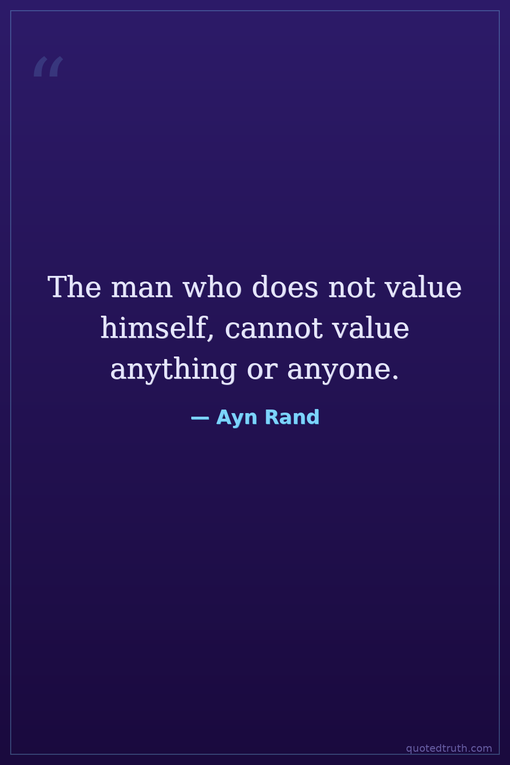The man who does not value himself, cannot value anything or anyone.