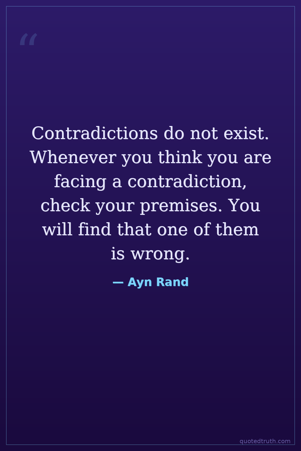 Contradictions do not exist. Whenever you think you are facing a contradiction, check your premises. You will find that one of them is wrong.