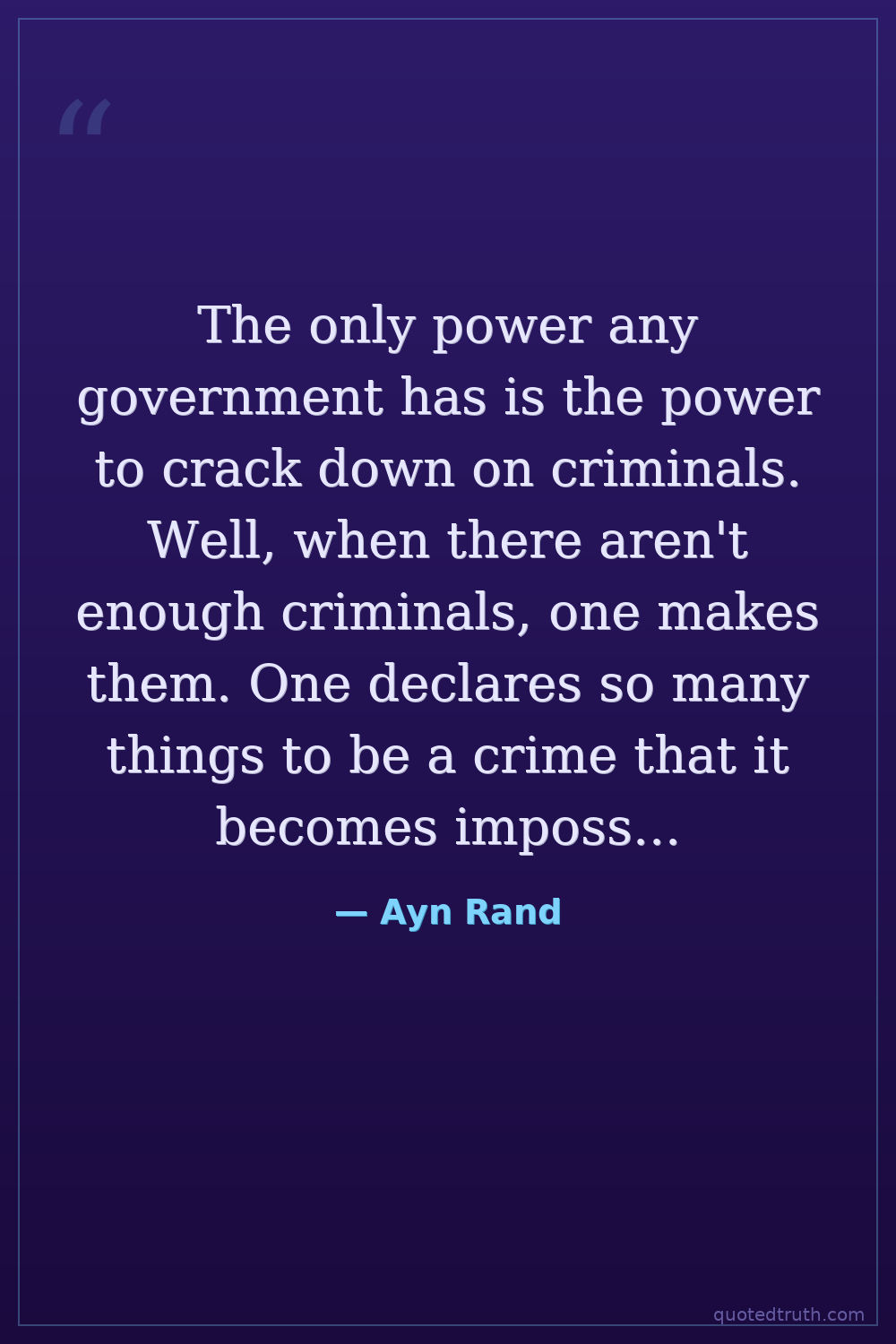 The only power any government has is the power to crack down on criminals. Well, when there aren't enough criminals, one makes them. One declares so many things to be a crime that it becomes impossible for men to live without breaking laws.