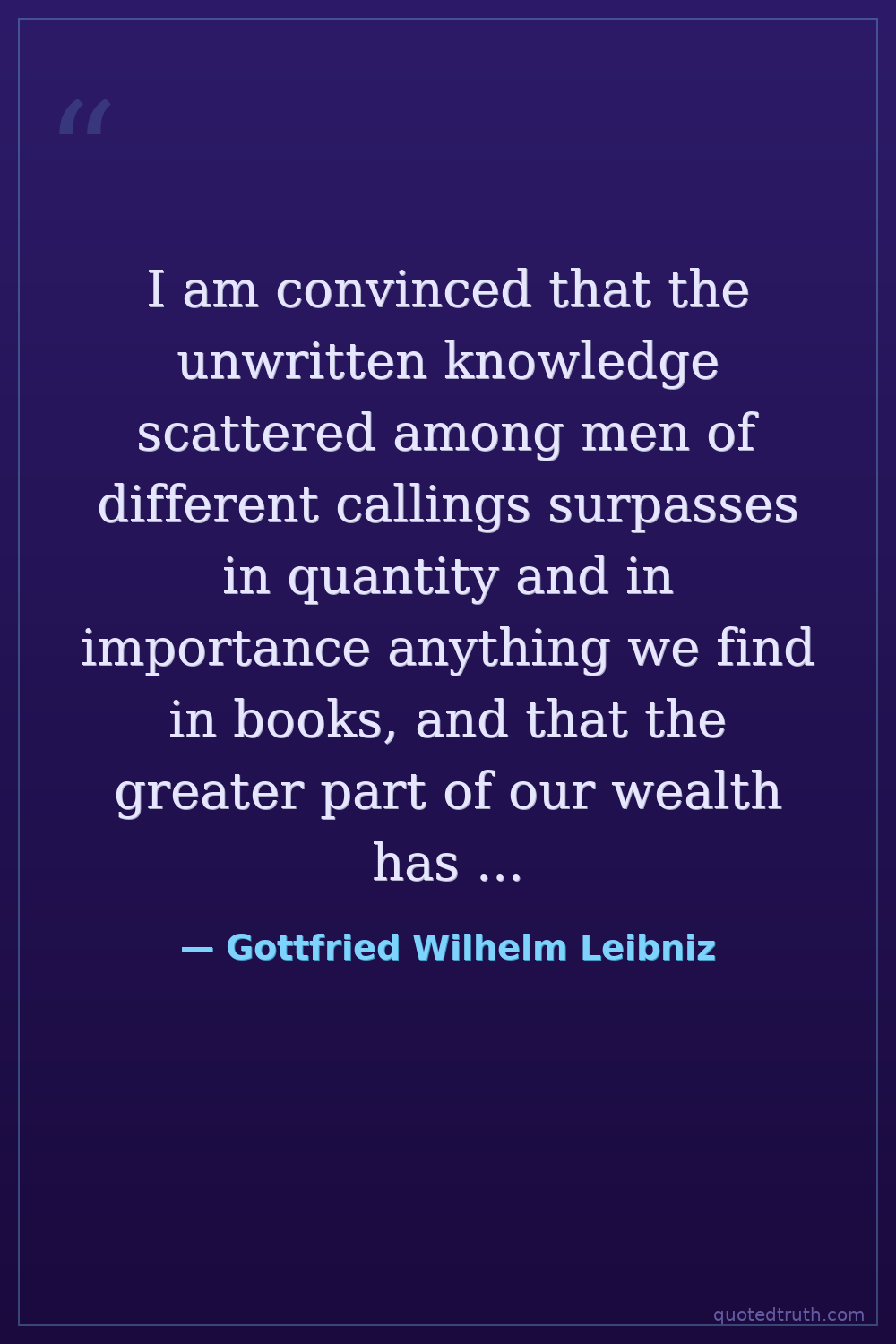 I am convinced that the unwritten knowledge scattered among men of different callings surpasses in quantity and in importance anything we find in books, and that the greater part of our wealth has yet to be recorded.