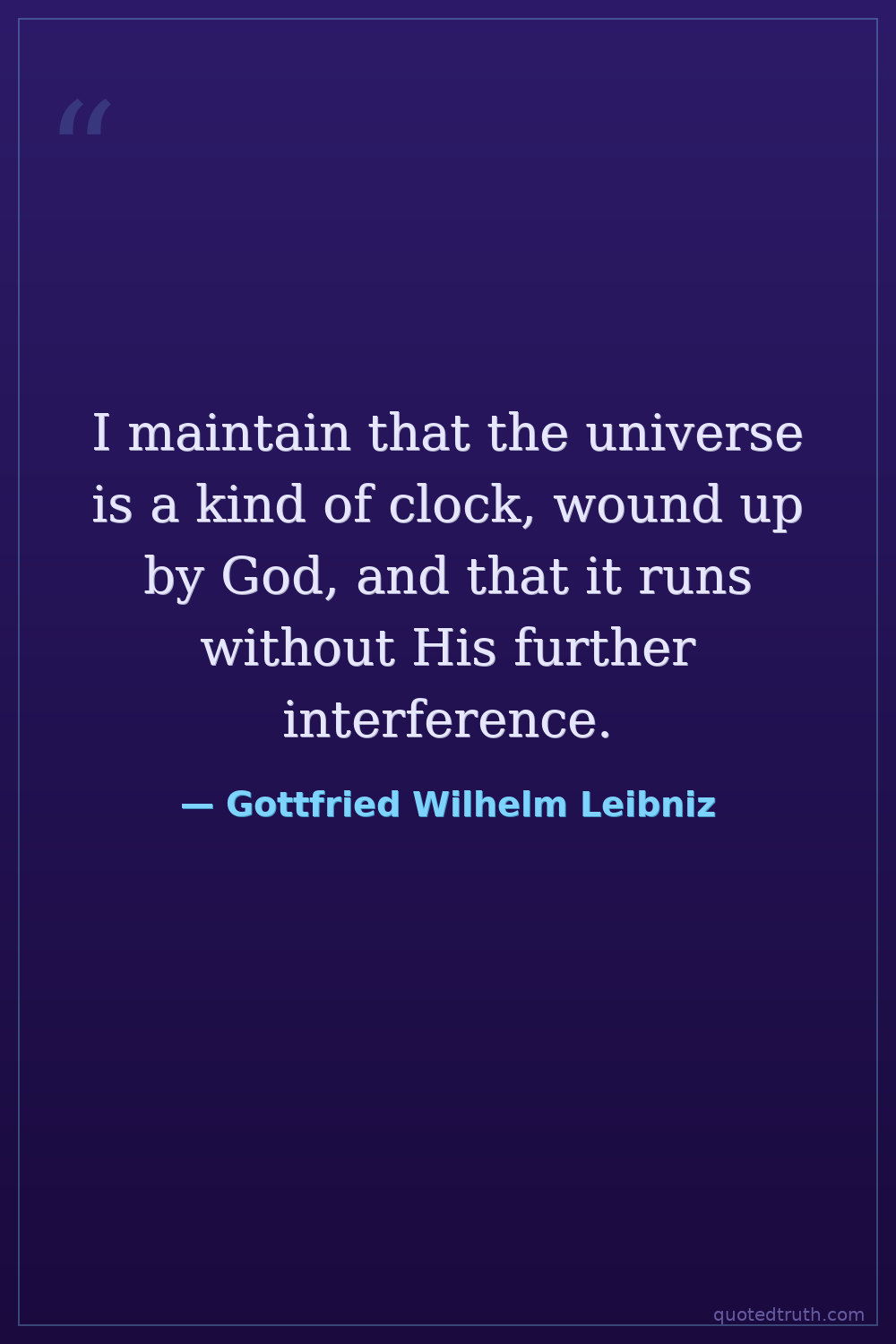 I maintain that the universe is a kind of clock, wound up by God, and that it runs without His further interference.