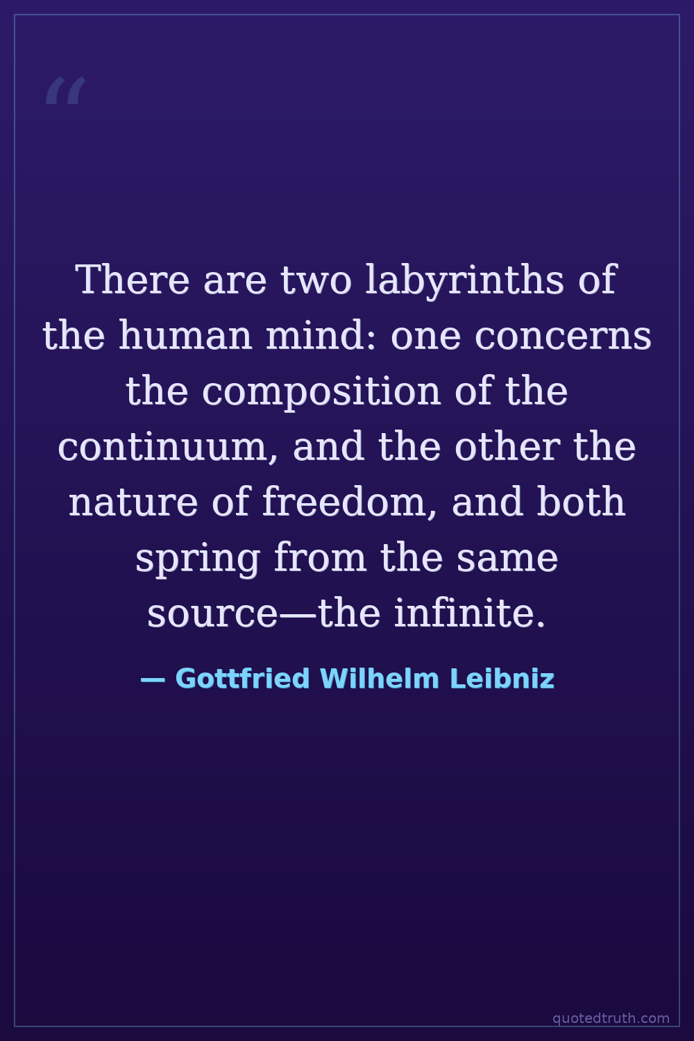 There are two labyrinths of the human mind: one concerns the composition of the continuum, and the other the nature of freedom, and both spring from the same source—the infinite.