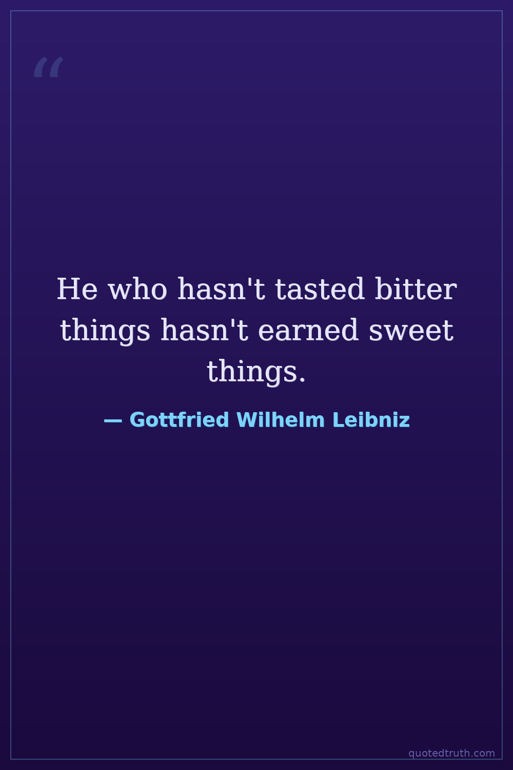He who hasn't tasted bitter things hasn't earned sweet things.