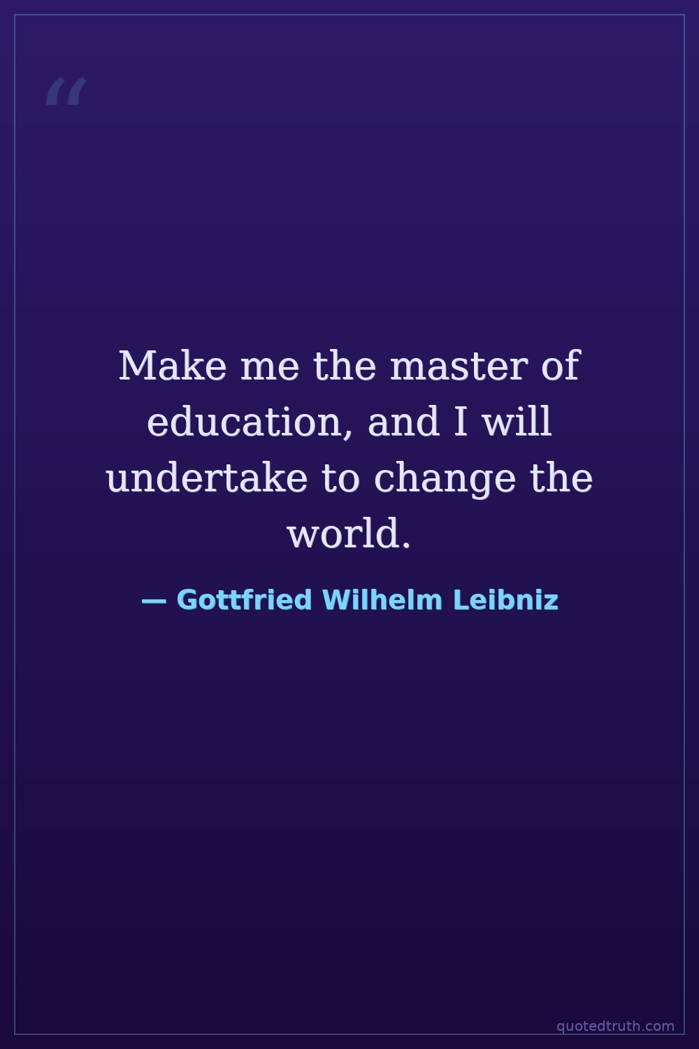 Make me the master of education, and I will undertake to change the world.