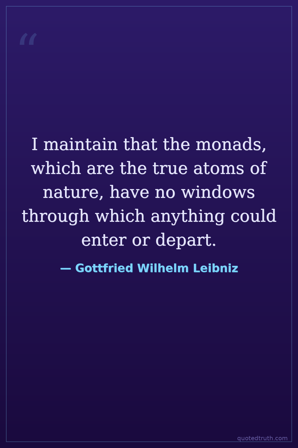 I maintain that the monads, which are the true atoms of nature, have no windows through which anything could enter or depart.